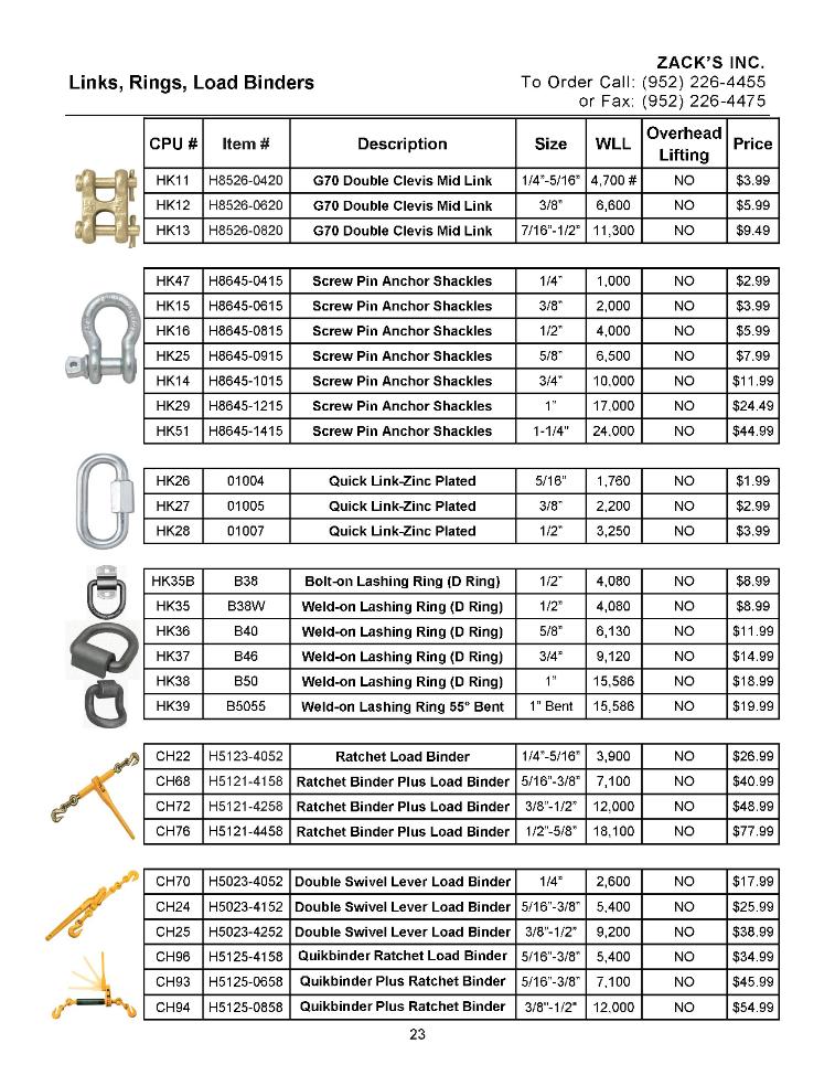 | Links, Rings, Load Binders G70 Double Clevis Mid Link G70 Double Clevis Mid Link G70 Double Clevis Mid Link Screw Pin Anchor Shackles Screw Pin Anchor Shackles Screw Pin Anchor Shackles Screw Pin Anchor Shackles Screw Pin Anchor Shackles Screw Pin Anchor Shackles Screw Pin Anchor Shackles Quick Link-Zinc Plated Quick Link-Zinc Plated Quick Link-Zinc Plated Bolt-on Lashing Ring (D Ring) Weld-on Lashing Ring (D Ring) Weld-on Lashing Ring (D Ring) Weld-on Lashing Ring (D Ring) Weld-on Lashing Ring (D Ring) Weld-on Lashing Ring 55° Bent Ratchet Load Binder Ratchet Binder Plus Load Binder Ratchet Binder Plus Load Binder Ratchet Binder Plus Load Binder Double Swivel Lever Load Binder Double Swivel Lever Load Binder Double Swivel Lever Load Binder Quikbinder Ratchet Load Binder Quikbinder Plus Ratchet Binder Quikbinder Plus Ratchet Binder |