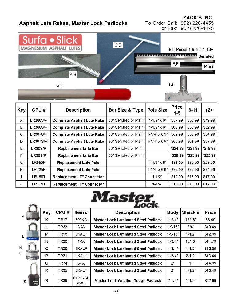 | Asphalt Lute Rakes, Master Lock Padlocks Complete Asphalt Lute Rake Complete Asphalt Lute Rake Complete Asphalt Lute Rake Complete Asphalt Lute Rake Replacement Lute Bar Replacement Lute Bar Replacement Lute Pole Replacement Lute Pole Replacement “T” Connector Replacement “T” Connector Master Lock Laminated Steel Padlock Master Lock Laminated Steel Padlock Master Lock Laminated Steel Padlock Master Lock Laminated Steel Padlock Master Lock Laminated Steel Padlock Master Lock Laminated Steel Padlock Master Lock Laminated Steel Padlock Master Lock Laminated Steel Padlock Master Lock Weather Tough Padlock |